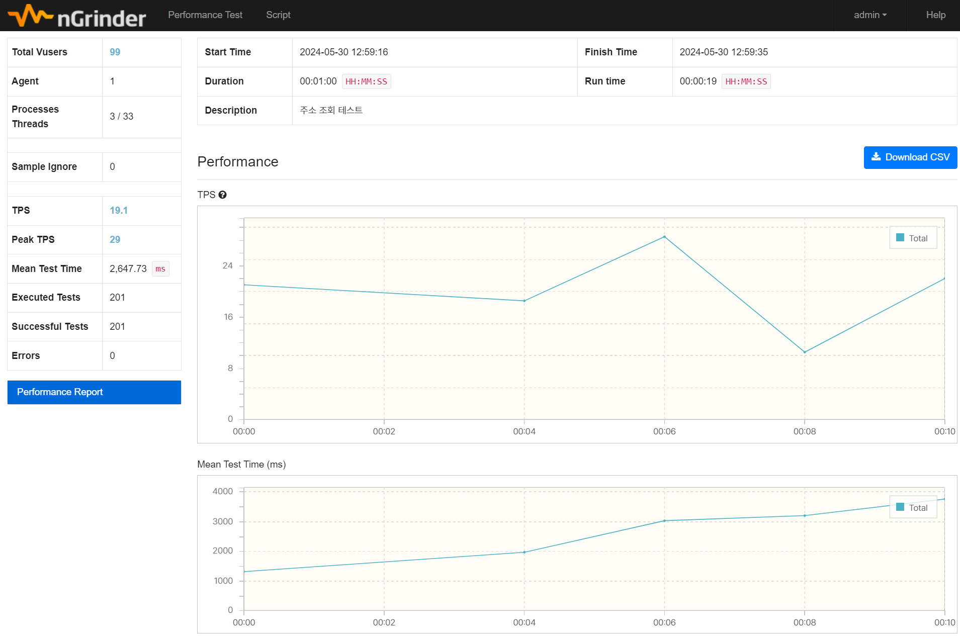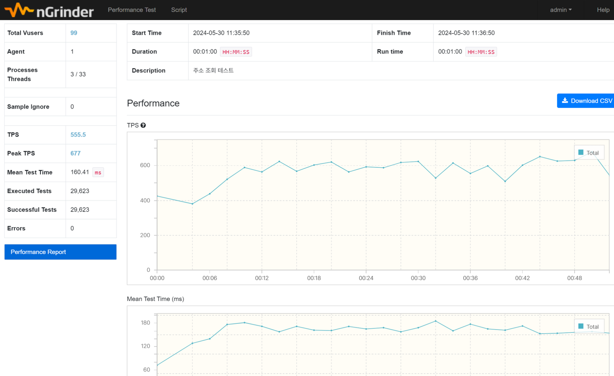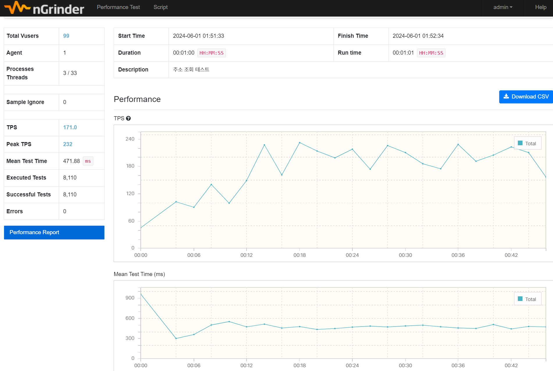 테이블을 division_key 키로 겁색하는 수정된 코드로 nGrinder로 테스트해보았다.