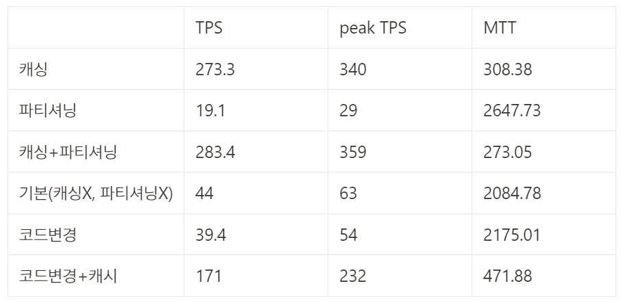 이전 글에서 캐싱으로 응답속도가 빨라진 것을 확인했는데, 과연 파티셔닝도 적용했을 때 성능이 좋아졌을까?