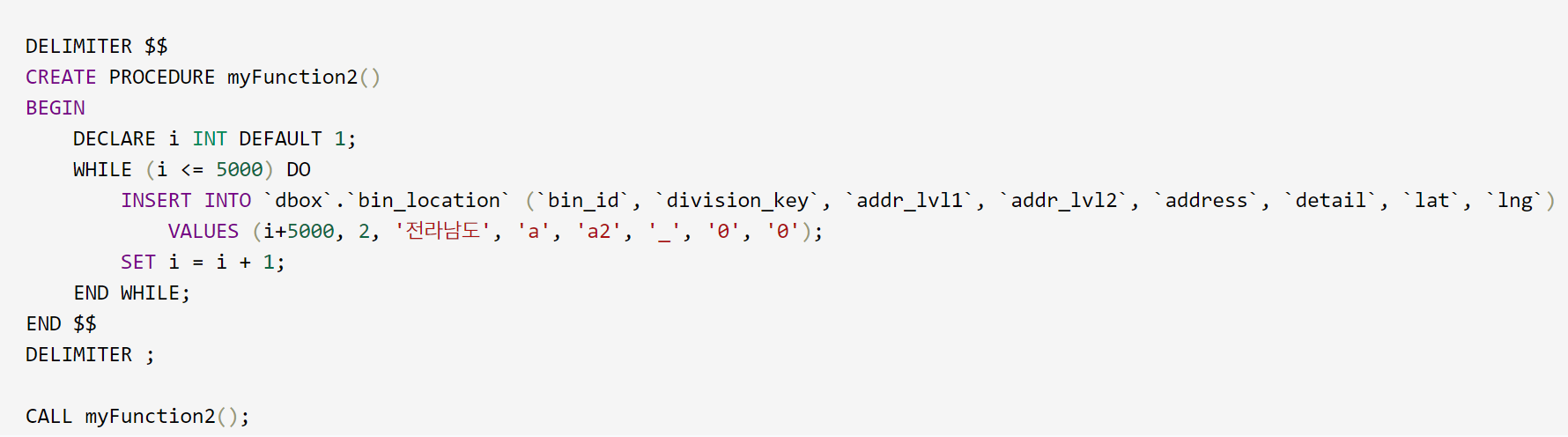 그래서 테스트 데이터를 procedure로 100만 개 만들어보려고 시도했으나 mysql에서 다음의 에러로 거부당했다..