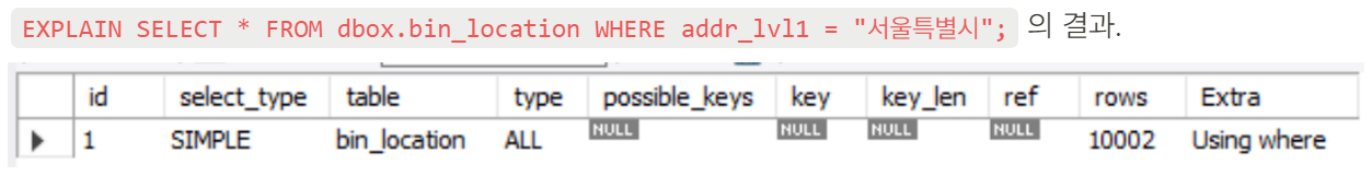 파티션 1 (p1) : 컬럼 addr_lvl1 의 값이 "서울특별시"인 row 5,000개